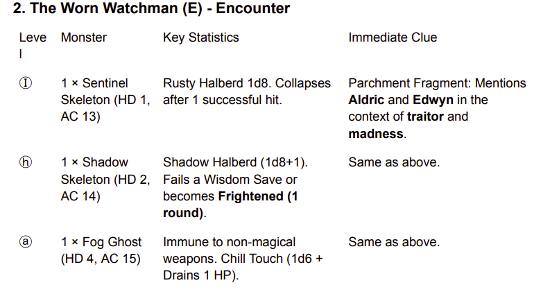 There’s a byline. That’s useless. There’s “Quick Information for the DM”. That’s useless. There’s a Focus. That’s useless. There’s a required rules. That’s useless. There’s a Quick Hook. That’s useless. This section is then followed by the real hook, which doesn’t say anything more than the Quick Hook does and is, maybe, three sentences in total as well as a rewards table? In fact, there are a suspicious number of tables in the adventure.