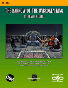 “The exterior of the barrow mound has a diameter of 60 feet. At each compass point, four menhirs stand 30 feet away from the barrow. These stones are marked with petroglyphs that detail the life of The Unbroken King.” And thus a column of backstory was born. Contributing little to nothing to the adventure.