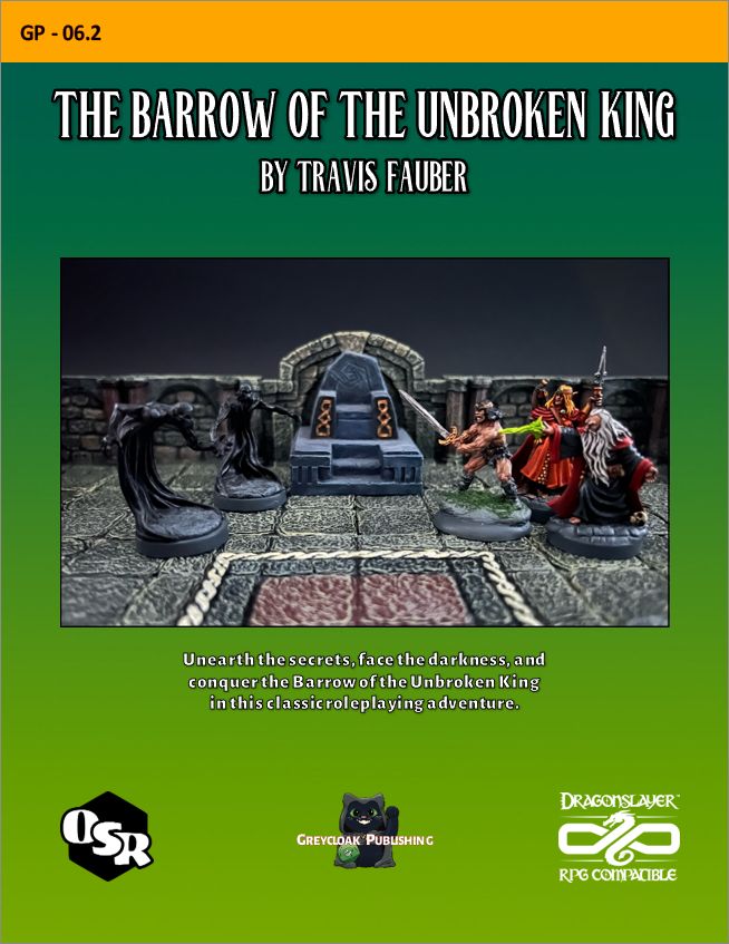 “Random monsters are an essential part of classic fantasy role-playing games, and The Barrow of the Unbroken King is no different. In normal situations, the Referee should roll for random monsters every other turn or whenever the players declare they are “searching” for something (with a roll of 1 on a d6 indicating an encounter)” What?! No rules for how to roll dice and read the THACO chart?
