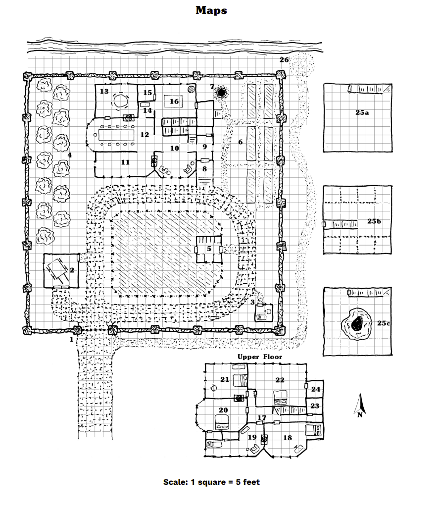 I’m only reviewing this because it’s not EXACTLY a random generator. A random generator inspires one to riff on what it produces. It helps you create, not to take, exactly, what comes out of it. Thusly, I don’t generally review them on purpose. You can get inspiration from many sources and who am I to say what can inspire you? This, however, promised a kind of series of pre-gen’d encounters in which to build the estate from and thus not a random generator and more of a dungeon geomorph type of thing.