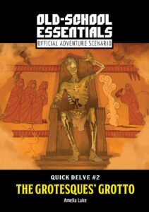 This sixteen page adventure uses about nine pages to describe sixteen rooms in a newly unsealed “Greek Mysteries” cave/temple/place. A decent little adventure that sprinkles in a bit of various interactives and does good enough describing things. Meh, it’s fine. And “Meh, it’s fine.” is good enough. It’s a sixteen page dungeon in a sixteen page adventure; it doesn’t need to change the world. Also, it’s OSE but doesn’t use the OSE style guide, for you haters.