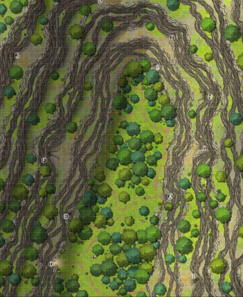 That’s the first actual room and can serve admirably to raise numbers issues about the adventure. Every room is like this, one per page, with a short summary up front and then a very long section of read-aloud. This is supported by a color map done in one of those arty/tile things, it looks like, for vtt use, and a more traditional map for the DM to consult with, which is better done.